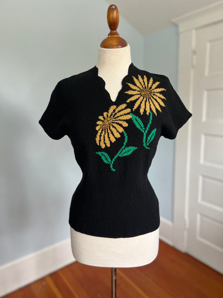 1940s Hand Knit Wool Sweater Blouse