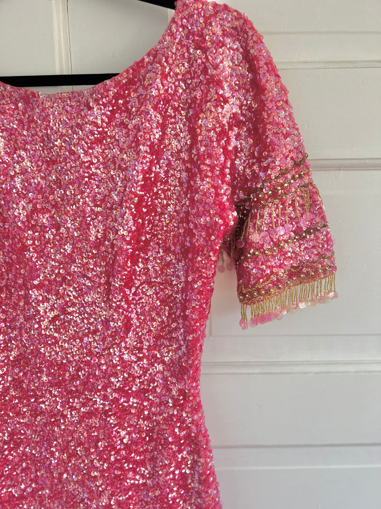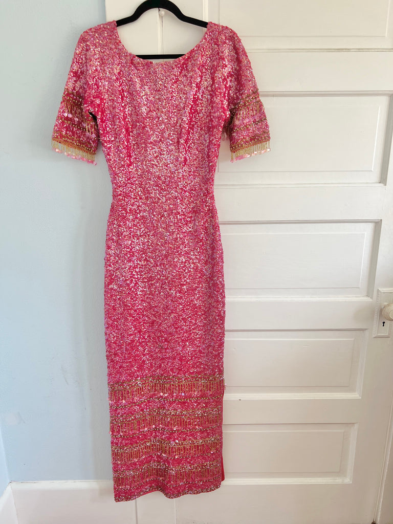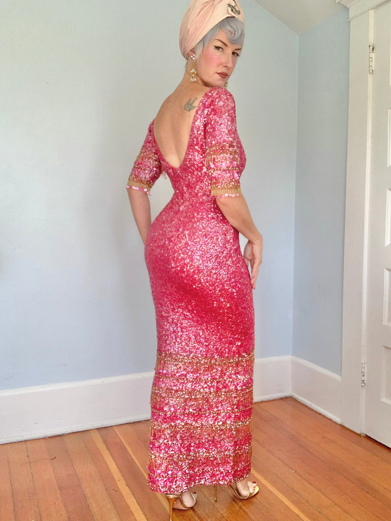 1960s “Gene Shelly’s Boutique Internationale” Hand Sequined Wool Evening Gown