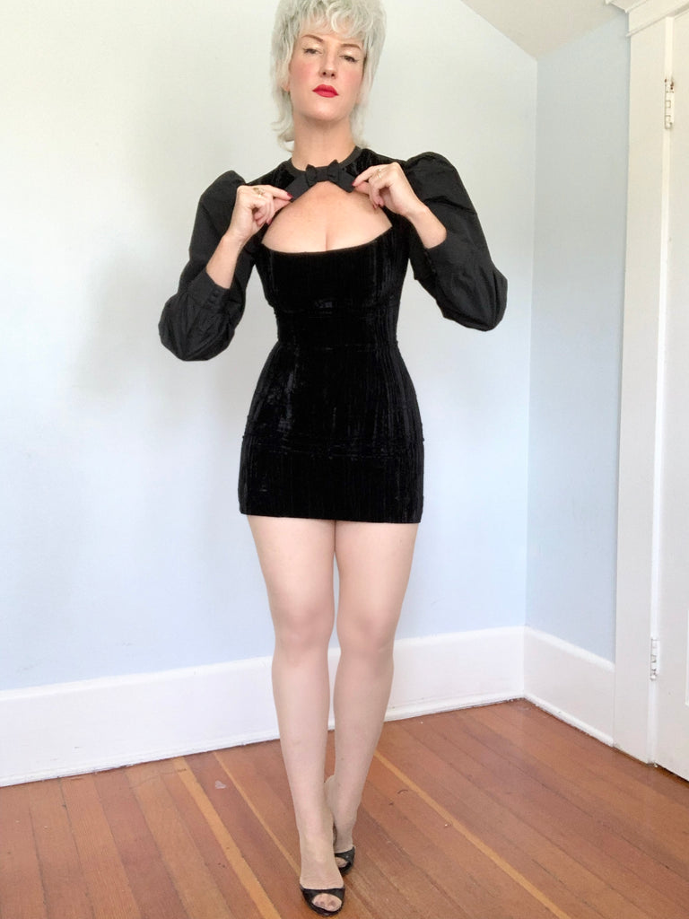 1960s Inspired “Alexa Chung” Velvet & Taffeta Mini Dress